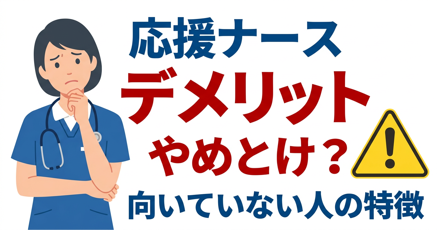 この記事では、応援ナースの基本的な働き方から、よくあるデメリット、人間関係の悩み、給料の実態、向いている人・向いていない人の特徴までをわかりやすく整理して解説します。